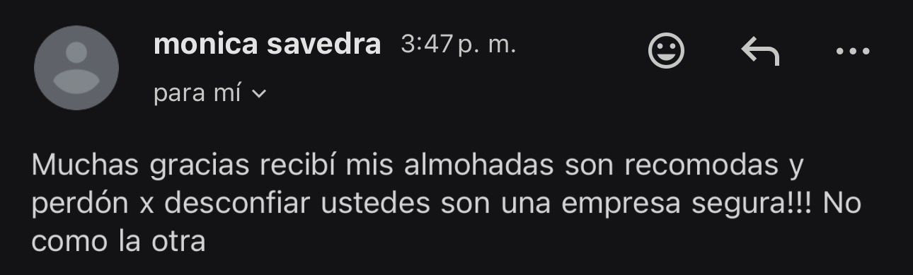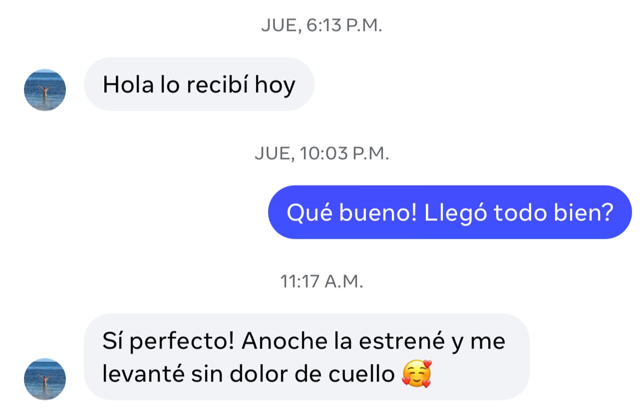 Nuestro equipo de soporte está disponible 6 días a la semana para vos: amable, rápido y competente. Ya sea que necesites ayuda para elegir la almohada o tengas una pregunta sobre tu pedido, somos personas reales que realmente se preocupan por tu confort. Escribinos y con gusto te ayudamos.